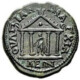 • Design Tetrastyle temple on crepidoma; within Apollon (Bonus Eventus) holding patera and laurel-branch.