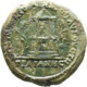 • Design Tetrastyle temple; within Artemis standing right, holding bow in left hand, drawing arrow with right hand from quiver at shoulder; at her feet, hound.