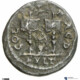 • Design Eagle standing facing on altar, head right, wings half-spread, holding wreath in beak, between two standards, each of them decorated with a star with eight rays. Border of dots.