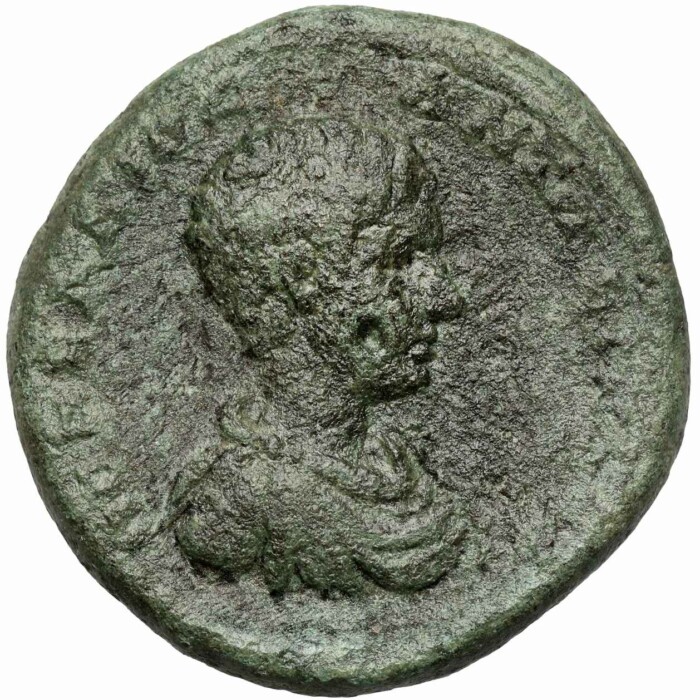 • Design Bust of the emperor in armor and paludamentum, in the rim