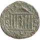 • Design Façade of hexastyle temple on double crepidoma with Corinthian columns, acroteria on roof and clipeus in pediment; inside Apollo standing left, holding laurel-branch in right hand, leaning left arm on tripod. Border of dots.