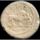 • Design Eros standing left, removing thorn from raised right paw of a lion standing right. Ground line. Border of dots.