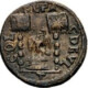 • Design Eagle standing facing on altar, head right, wings half-spread, holding wreath in beak, between two standards, each of them decorated with a star with eight rays. Border of dots.