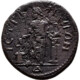 • Design Apollo standing facing, head left, wearing long garment, holding patera in outstretched right hand over flaming altar and lyre with left hand on a stele.