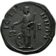 • Design Nemesis-Aequitas standing facing, head left, holding scales in right hand, cubit-rule and ribbon in left arm; at her feet, wheel. Border of dots.