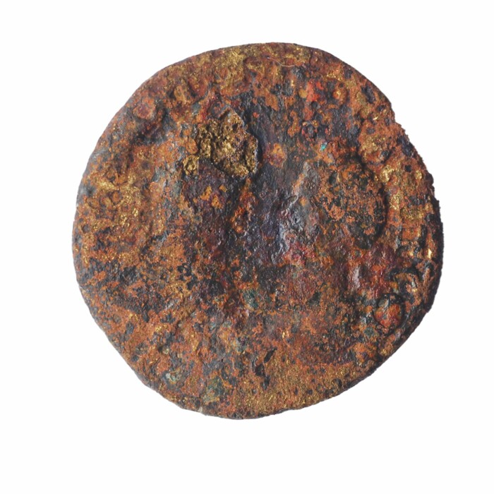 • Legend Legend illegible, Tyche stg. facing left holding rudder and cornucopiae
