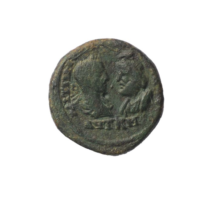 • Design below, laureate, draped and cuirassed bust of Gordian III right, facing draped bust of Serapis left