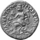 • Design Kybele seated left, holding patera, arm resting on drum, lions at sides. Epsilon in left field