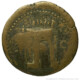 • Design Triumphal arch with garland between pillars surmounted by statuary group; emperor (Nero) in facing quadriga, escorted by Nike on left, standing facing, holding uncertain object in right hand and Pax on right, standing facing, holding cornucopia? in left arm; flanked by two soldiers on each column on both sides of the arch; Mars in niche on left side of arch.