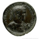 • Design Emperor (Caracalla) in military attire standing facing, head left, wearing cuirass, fluttering paludamentum and boots, holding Nike with laurel wreath in outstretched right hand and eagle-sceptre in left hand. Ground line. Border of dots.