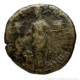 • Design Turreted Tyche standing facing, head left, holding hexastyle temple in each outstretched hand; at her feet, lighted and garlanded altar. Ground line. Border of dots.