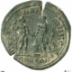 • Design Emperor (Caracalla) receiving the apples of the Hesperides from Heracles; to left, bearded emperor (Caracalla) in military attire standing facing, head right, wearing cuirass and boots, resting right arm on long sceptre; to right, nude Herakles, standing left, holding the apples of the Hesperides in right hand, resting left arm on club; inbetween, lighted and garlanded altar. Ground line. Border of dots.