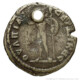 • Design Ares standing left, wearing helmet, raising right arm, holding shield and spear in left hand.