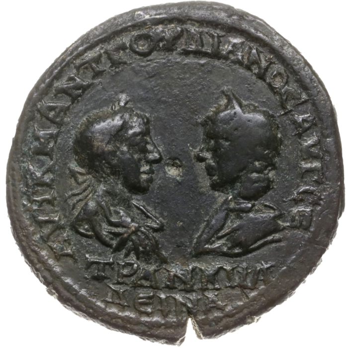 • Legend AVT K M ANT ΓOPΔIANOC AVΓ CЄ, TRANKVA ΛЄINA