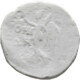 • Design Nike standing left on sphere, wearing double chiton; holding wreath and palm branch; in front of her eagle standing left, head right, with closed wings and holding wreath in its beak.