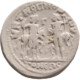 • Design Dioscuri, each wearing chlamys, standing facing, heads turned to each other; each holding his steed by the reins and leaning on his spear; star over each of their heads.