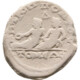 • Design Dioscuri reclining facing, feet and heads left, each holding patera in right hand.