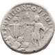 • Design Laureate and cuirassed emperor (Severus Alexander) standing left, wearing paludamentum and boots, holding rod of trophy and parazonium; at his feet shield and tied up captive seated right.