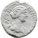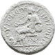 Veiled and turreted Cybele (weaing kalathos?) enthroned left, holding patera in outstretched right hand, left arm resting on tympanon; at her feet, lion lying, left, with raised front paw.