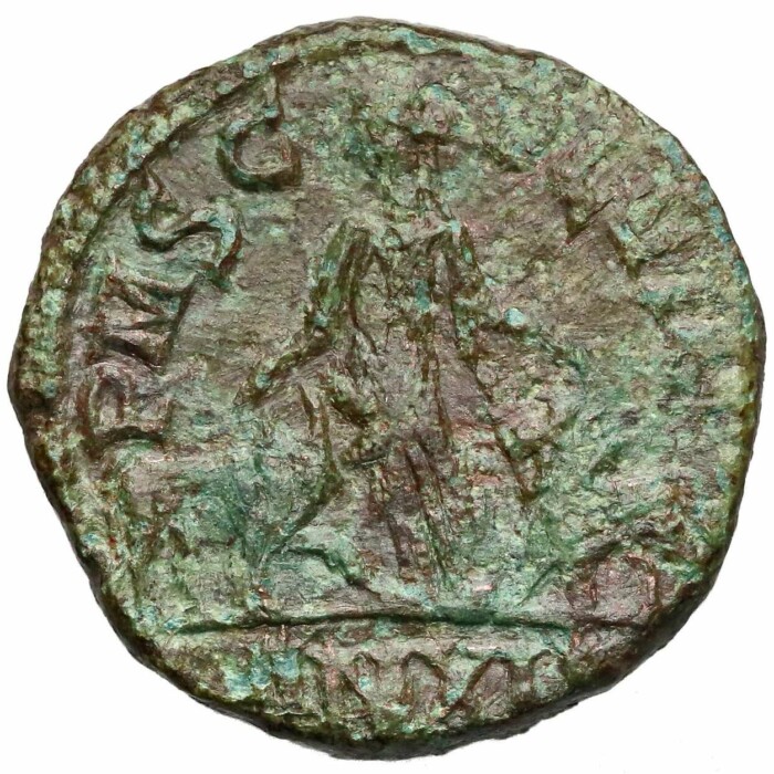 • Design Moesia standing between the bull on the left and the lion on the right, placing her hands on their heads